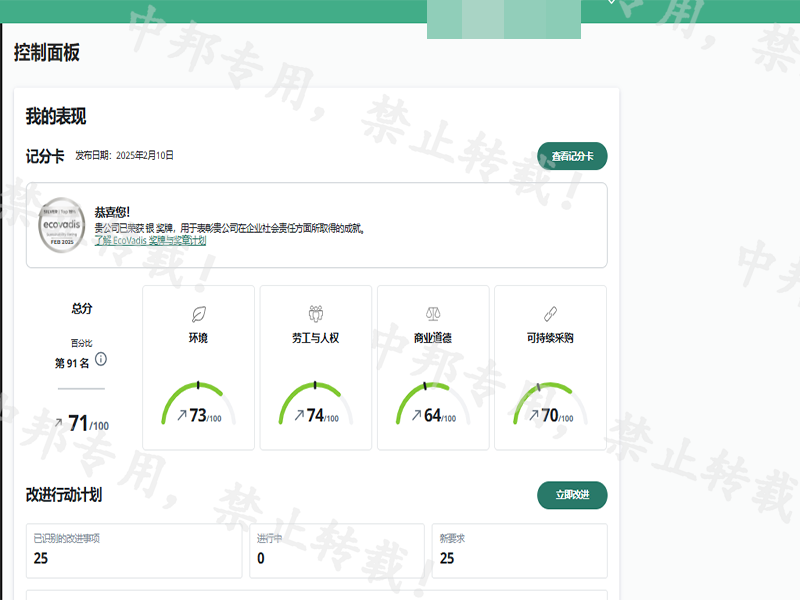恭贺XX汽车饰件系统有限公司2025年2月顺利通过EcoVadis验厂 获得71分银牌!